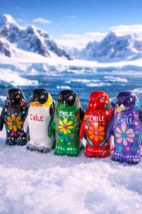Pingüinos de cerámica chilena, pintados a mano y disponibles en variados colores. Un souvenir artesanal inspirado en la Antártica Chilena y la identidad del sur de Chile