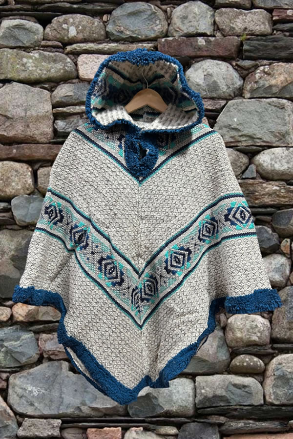 Poncho de lana suave y liviano hecho a base de lana de oveja, abrigador y perfecto para los días fríos.